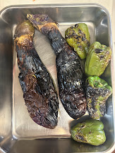 1. 茄子とピーマンをAのように網焼きでこんがり焼く。